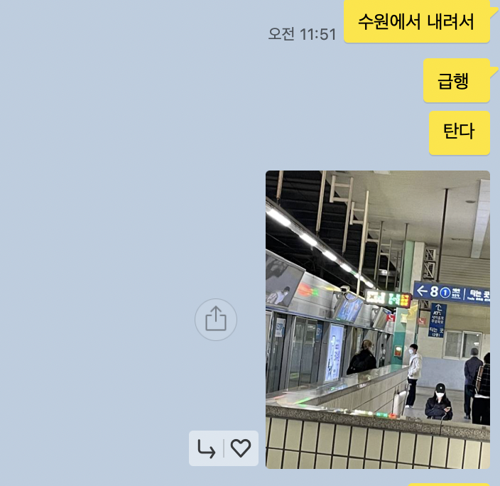예를 들면 오후 12시 30분 - 오후 10시 00분까지 근무라고 가정할 때, 전 날에 같이 일하는 친구에게 카톡을 보냅니다.