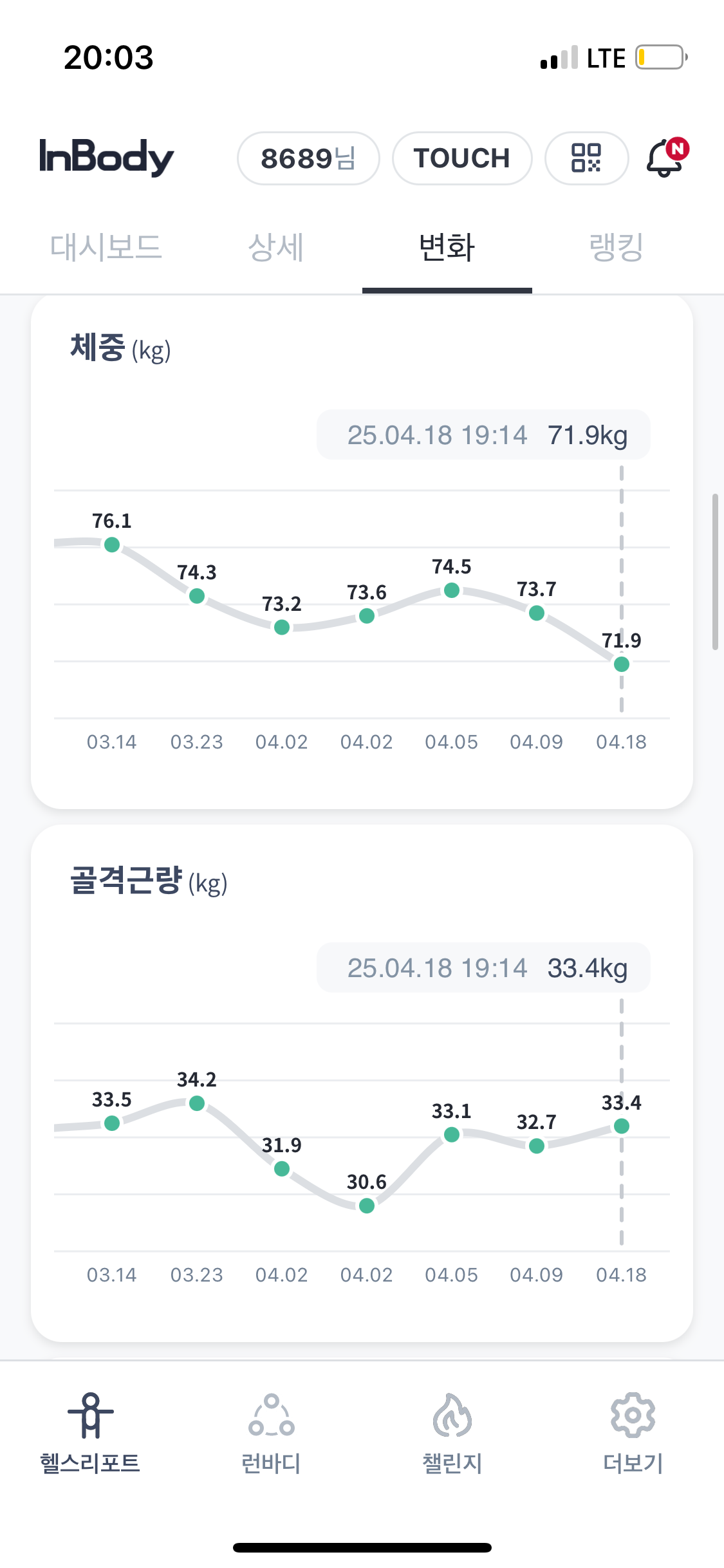 골격근량 32.6kg ➡️ 33.4kg (+0.8kg)